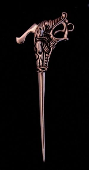 Die Gewandnadel wurde von den Wikingern genau so gern getragen wie von allen nordischen und germanischen Stämmen. Sie konnte aus vielen unterschiedlichen Materialen bestehen, angefangen von Knochen bis zu Eisen, Silber und Gold. Die einfachen Nadeln aus Horn oder Knochen wurde meist in den langen untätigen Winternächten angefertigt.